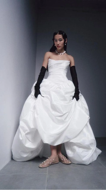 Невеста в платье Arina Boganova — это смесь свадебного шика и панка, роскоши и простоты, утонченной элегантности и дерзости. Наверное, в этом и вся сама основательница и дизайнер модного дома Арина Боганова, которая обладает невероятной харизмой и стилем в одежде. В коллекции бренда представлены готовые свадебные и вечерние платья в более классических формах или же совсем нетипичные: с юбками-пузырями, с черной фатой и перчатками или те, что напоминают водную нимфу.