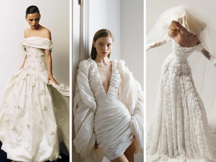 В коллекции Amures невесты точно найдут платья на свой вкус. Здесь представлены как мини, так и макси с длинным шлейфом, одни наряды усыпаны кристаллами, а другие сшиты из изящно светящейся ткани. Здесь есть место и минимализму, и роскоши, что всегда идут бок о бок (читайте также: Невесты на миллион: 8 потрясающих свадебных платьев, в которых выходили замуж топ-модели).