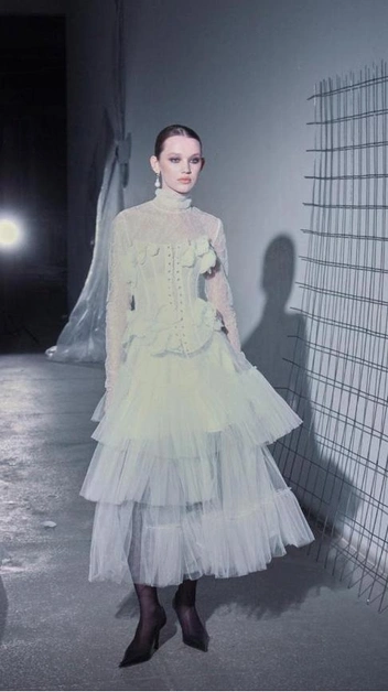Виктория Лабай всегда обладала неповторимым стилем в одежде, поэтому и шить свадебное платье решила сама. Основательница модного Дома получила много приятных комплиментов своему подвенечному образу, поэтому направила свой талант в нужное русло. Так появился свадебный бренд, наряды которого можно смело называть искусством. Это кукольные платья из шелка с цветочной вышивкой, фактуры, напоминающие стебли, многоярусные и асимметричные платья и образы со стразами, блеск которых может ослепить всех (читайте также: Невеста на миллион: 7 самых дорогих свадебных платьев королевских особ).