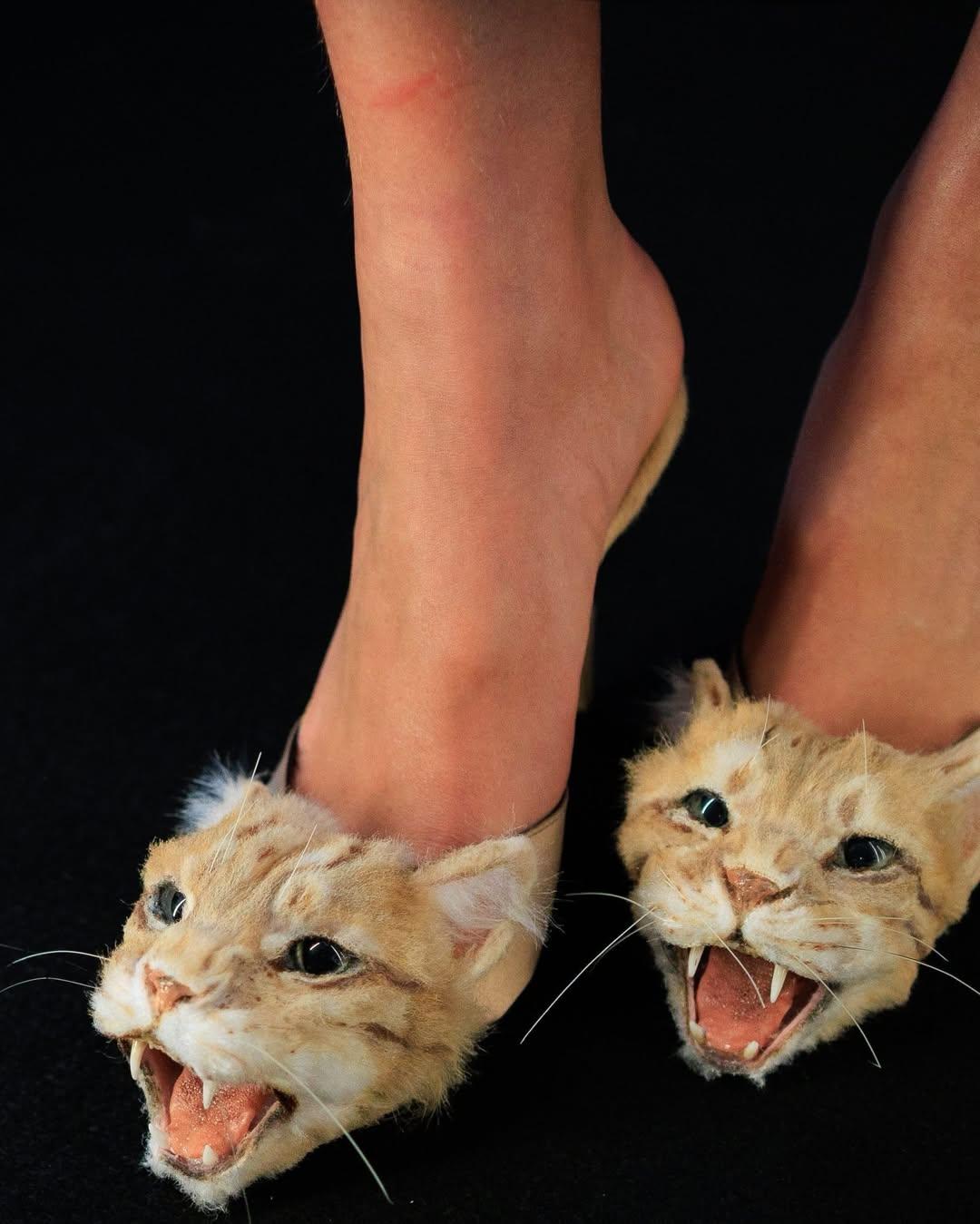 Поэтому своих «оборотней» дизайнер наделяет десятками отсылок к анималистике. Ткань в его руках непременно обретает черты змеиной чешуи, платья и юбки покрываются перьями, а пальто отращивают рукава и манжеты из меха. Та же тенденция наблюдается и в аксессуарах — сумки встают на курьи ножки, будто избушки из сказок, на туфлях вновь появляются «головы» хищников, а за серьгами пролетают длинные пряди ни то волос, ни то перьев.