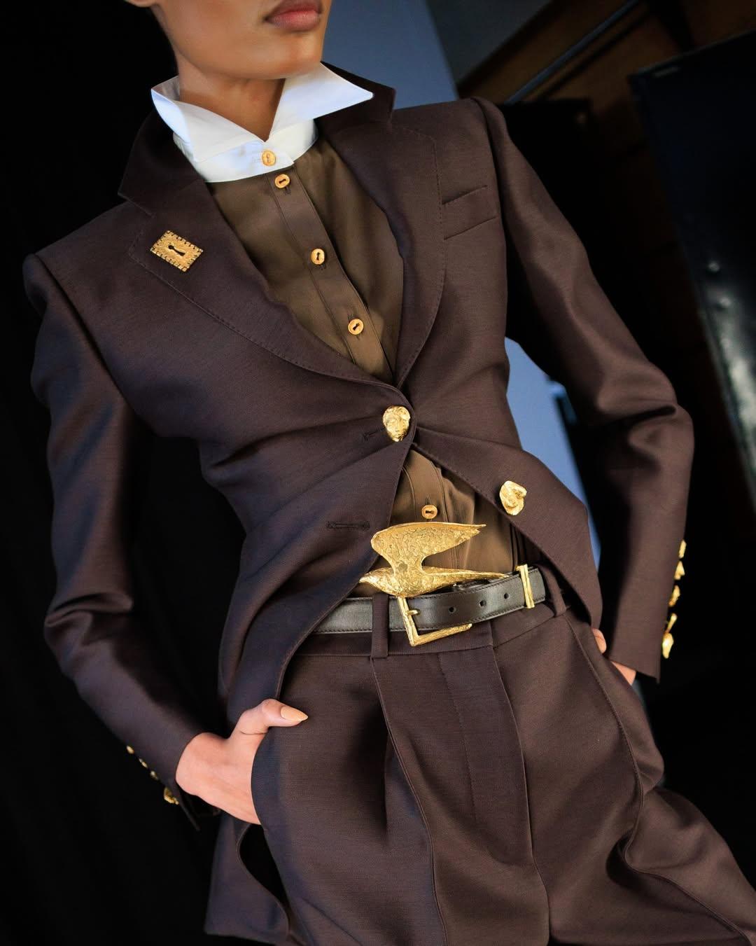 По собственному признанию Дэниела, на этот ход его подтолкнула брошь в виде сфинкса — одна из первых вещей, которую он разглядел в архивах, когда только пришел работать в Дом. Ее еще в 1935 году Эльза Скиапарелли разработала вместе со швейцарским художником Альберто Джакометти. Роузберри невероятно приглянулась идея, заложенная авторами — двойственность нашего естества. Он считает, что это именно то, как можно описать всю эстетику Schiaparelli: микс человеческого и животного, феминного и маскулинного, экстравагантного и гламурного.