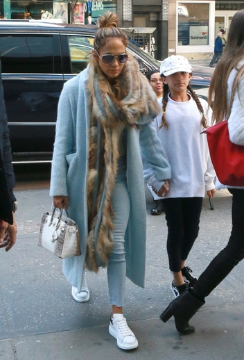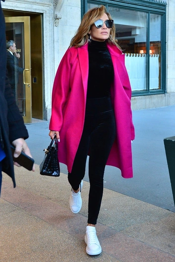 Сейчас поп-дива и актриса Дженнифер Лопес активно старается вернуть себе прежний статус иконы стиля, который у нее забрали в последние годы. Звезда активно мелькает в медийном поле и регулярно показывает все новые и новые образы. При этом нередко первоочередным для нее является удобство. Если необходимо чувствовать себя в максимальном комфорте (например, во время шопинга или прогулки с детьми), Дженнифер выбирает универсальные кожаные кеды Alexander McQueen с замшевой вставкой на заднике. Для повседневных аутфитов звезда выбрала сразу две аналогичные модели — с черной и бежевой вставками, которые она носит в зависимости от палитры образа.