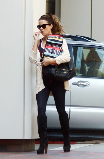 В гардеробе Кейт Бекинсейл есть одна вещь, с которой у нее сложились особенно крепкие отношения, — замшевые сапоги на высоком каблуке. Удивительно, насколько крепка любовь актрисы к этой паре обуви. Звезда носит ее почти десять лет и сочетает не только с провокационными платьями и мини-юбками, но даже с комплектом для занятия спортом. Выглядит не всегда уместно, но, кажется, Кейт абсолютно все равно: на первом месте в ее сердце сапоги, а не условные правила стиля.
