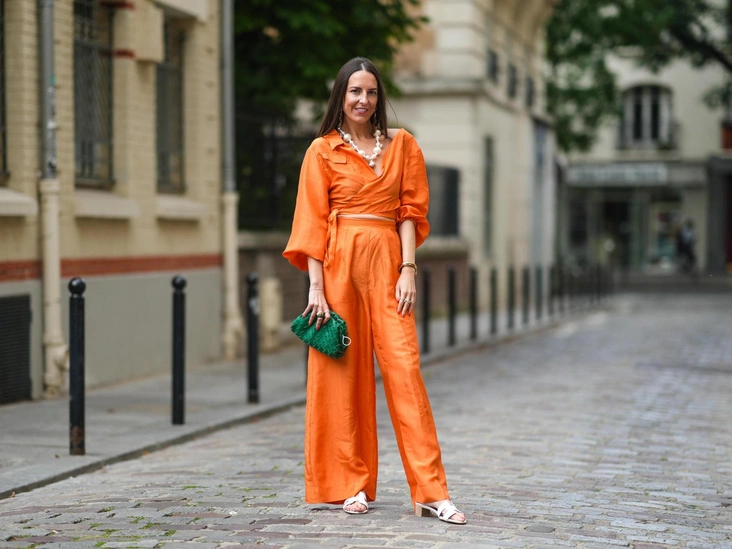 Этот сложный цвет обладает сильной визуальной силой: он считается оттенком власти и уверенности в себе, однако его яркость способна ненароком придать вам несколько лишних сантиметров. Все же лучше перестраховаться и исключить одежду в оранжевых тонах, сделав акцент на аксессуары.
