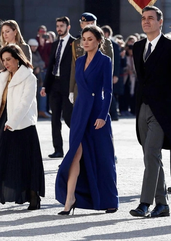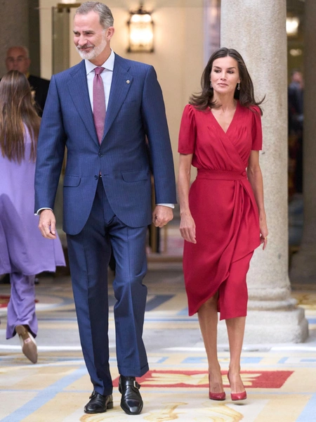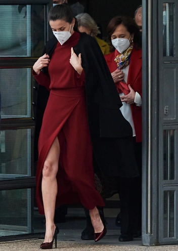 Королева Испании — еще одна обладательница громкого титула, которая обожает высокие разрезы. В 2020 году у Летиции была целая серия нарядов, настолько откровенно демонстрирующих ее фигуру, что обозреватели не знали, что и сказать (читайте также: Скандала не избежать: 13 самых вызывающих образов королевы Летиции, за которые ее осудили на всю страну). В начале января 2020 года Ее Величество присутствовала на новогоднем военном параде в Королевском дворце Мадрида во вроде бы закрытом платье, которое, однако, оказалось удивительно откровенным во время ходьбы. На выставке в Национальной библиотеке Мадрида позже в том же месяце королева была в алом платье-миди Massimo Dutti, которое в движении из-за разреза демонстрировало ее колени.