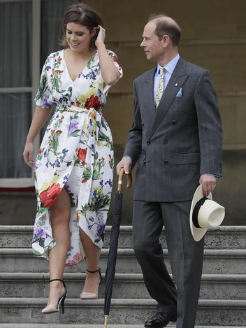 Принцессы Беатрис и Евгения также испробовали главный королевский прием соблазнения. Старшая из принцесс Йоркских появилась в черном платье-смокинге без рукавов и длинным подолом с разрезом спереди на выставке Alexander McQueen Savage Beauty в 2015 году. А ее младшая сестра Евгения для приема в честь Duke Of Edinburgh Awards в саду Букингемского дворца выбрала белое чайное платье модели Clarine с крупным цветочным принтом марки Alice + Olivia за 350 фунтов, которое благодаря фасону с запахом демонстрировало ее колени.