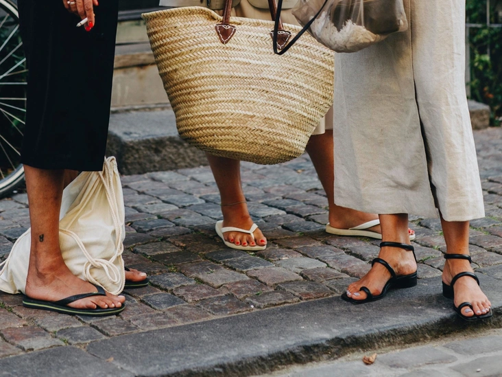 На этот летний сезон можно выбрать биркенштоки на плоском ходу, кожаные шлепанцы на манер девяностых, а также базовые и классические сабо.