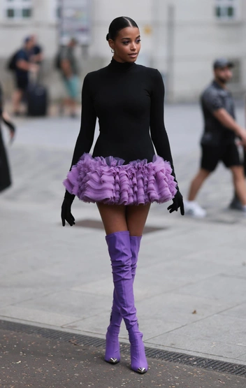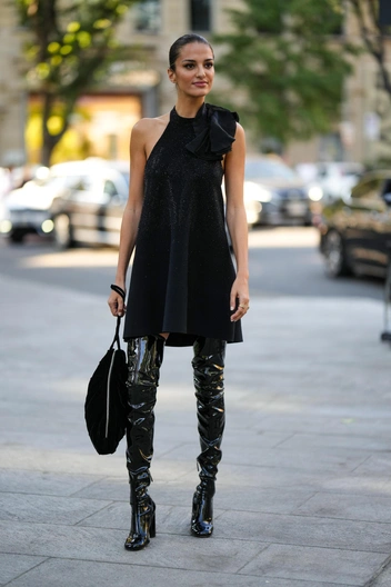 Помните про стилизацию: в ботфорты не стоит заправлять брюки и джинсы, поэтому носите их с платьями, юбками или же элегантными шортами-бермудами (читайте также: 7 самых модных пар осенней обуви на плоском ходу, в которой вам будет комфортно весь день).