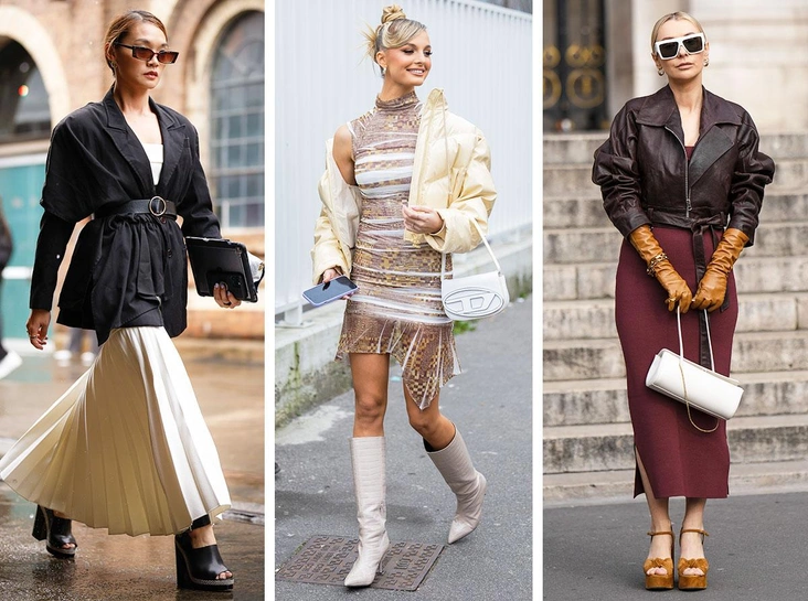 Такая длина является самой оптимальной, так как трендовая макси будет смотреться с сезонной курткой нелепо и безвкусно. Кроме того, платье в пол вы рискуете сразу же испортить — дождливая погода обязательно оставит отпечаток на подоле наряда. Разумеется, носить длинные модели можно, но когда вы отправляетесь на мероприятие или свидание, а для повседневных образов стоит выбирать более практичные вещи длины миди или мини.