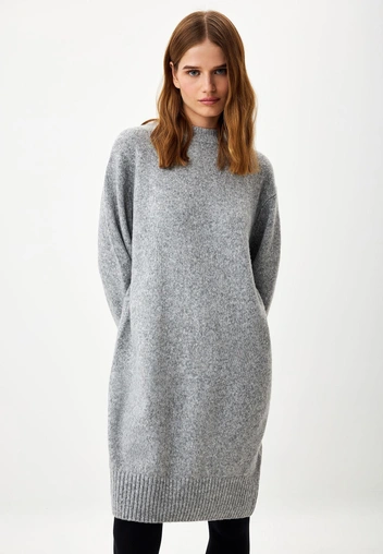 Также перед покупкой подумайте о своей куртке — если она короткая, то длинное и бесформенное платье-свитер вам не подойдет, так как такой фасон будет полнить и делать шире. Лучше сделать акцент на облегающей или приталенной модели.