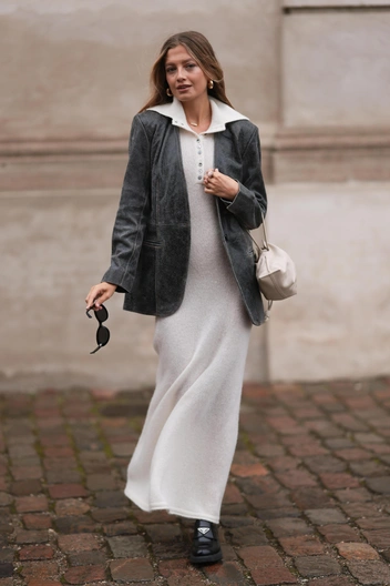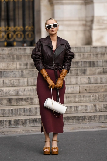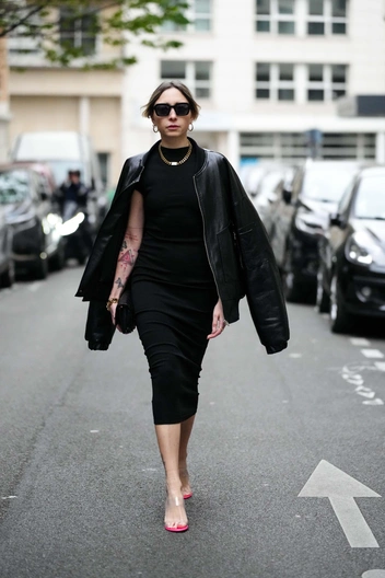 В сочетании с курткой кожаное платье будет смотреться эффектно и дорого, если вы сделаете акцент на плотном матовом материале и лаконичном дизайне. Присмотреться стоит к моделям длины миди — так изделие напомнит одну из самых стильных юбок этого сезона и придаст образу эффектности и элегантности (читайте также: Перестаньте это носить: 5 вещей из кожи, которые выглядят безвкусно в 2023 году (и чем их заменить)).