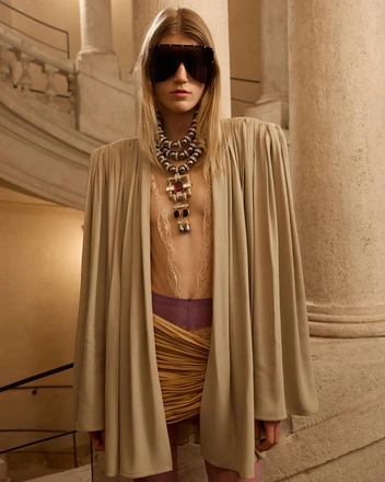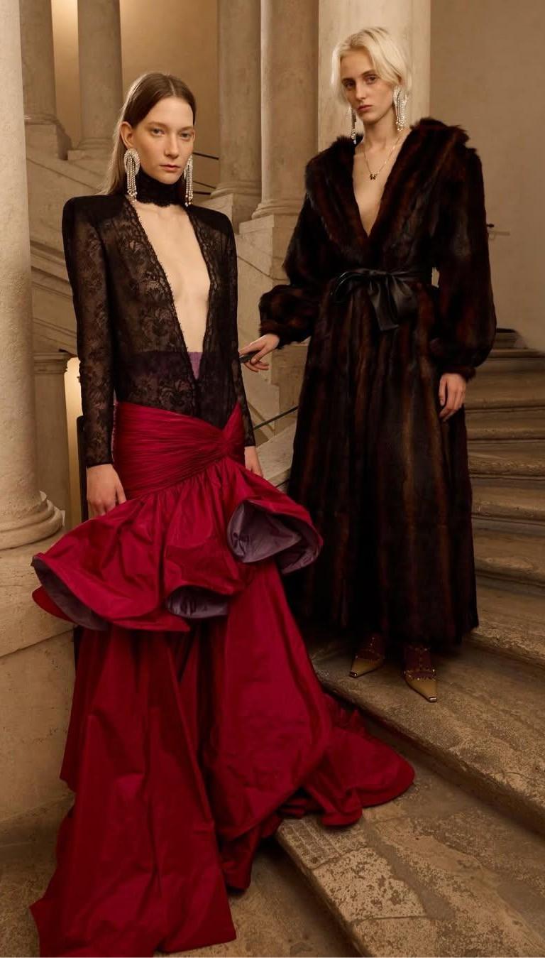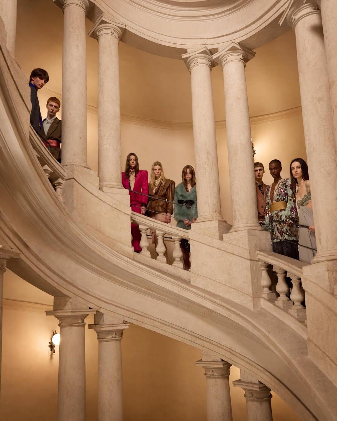 Вне основного модного сезона прошел показ новой коллекции Valentino. Посреди барочных декораций Палаццо Барберини Алессандро Микеле представил сразу 84 образа. Все они вошли в коллекцию Interferenze, полную архитектурных отсылок, оммажей прошлому Дома и историческим эпохам.