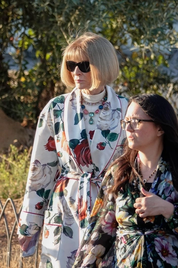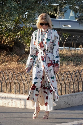 В числе первых прибывших оказалась Анна Винтур. Бывший главный редактор американского Vogue появилась в шелковом плаще с принтом в виде роз, аналогичной водолазке и летящей белой юбке. Кроме того, она надела и фирменные солнцезащитные очки — неотъемлемый атрибут ее стиля.