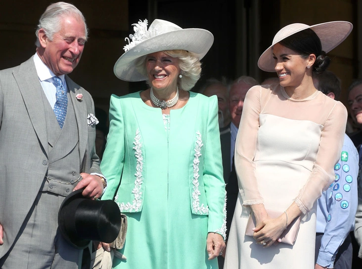 Еще один значительный сдвиг в стиле Меган произошел сразу после свадьбы. Три дня спустя, на праздновании 70-летия принца Уэльского, герцогиня определила для себя, что, по ее мнению, должна носить новоявленная королевская особа. Перед жадной до обсуждения публикой теперь-уже-герцогиня Сассекская появилась в пыльно-розовом платье от Goat (одного из самых любимых брендов герцогини Кембриджской) с целомудренной длиной юбки и закрытыми плечами. А к нему она добавила прозрачные колготки, туфли и шляпу – все, что необходимо любой королевской особе. Как написали бы в учебниках.