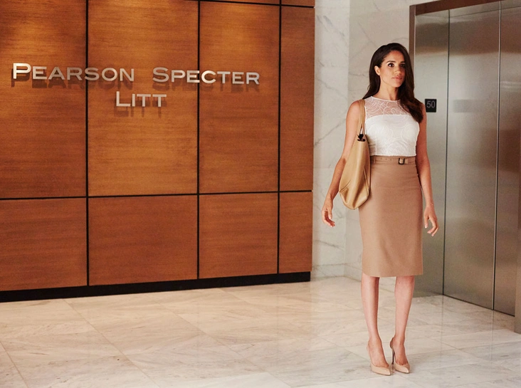 Рейчел Зейн – самый простой путь для Меган вернуться к своему привычному и функциональному гардеробу. Помощница адвоката носила на экране все: брюки, джинсы, свитера, скинни, юбки-карандаши, костюмы и лодочки. Причем сама Сассекская уже успела намекнуть, что мы будем видеть реальное воплощение Рейчел Зейн чаще. Так, после официального объявления Сассекских о переезде в Канаду Меган посетила женский центр в центре города Истсайд в Ванкувере. Наряд супруги принца был повседневным: молочный свитер The Row, скинни-джинсы DL1961и сапоги Le Chameau. Но поклонники Suits моментально определили его истоки – в этом же свитере появлялась Рейчел в одной из серий «Форс-мажоров».