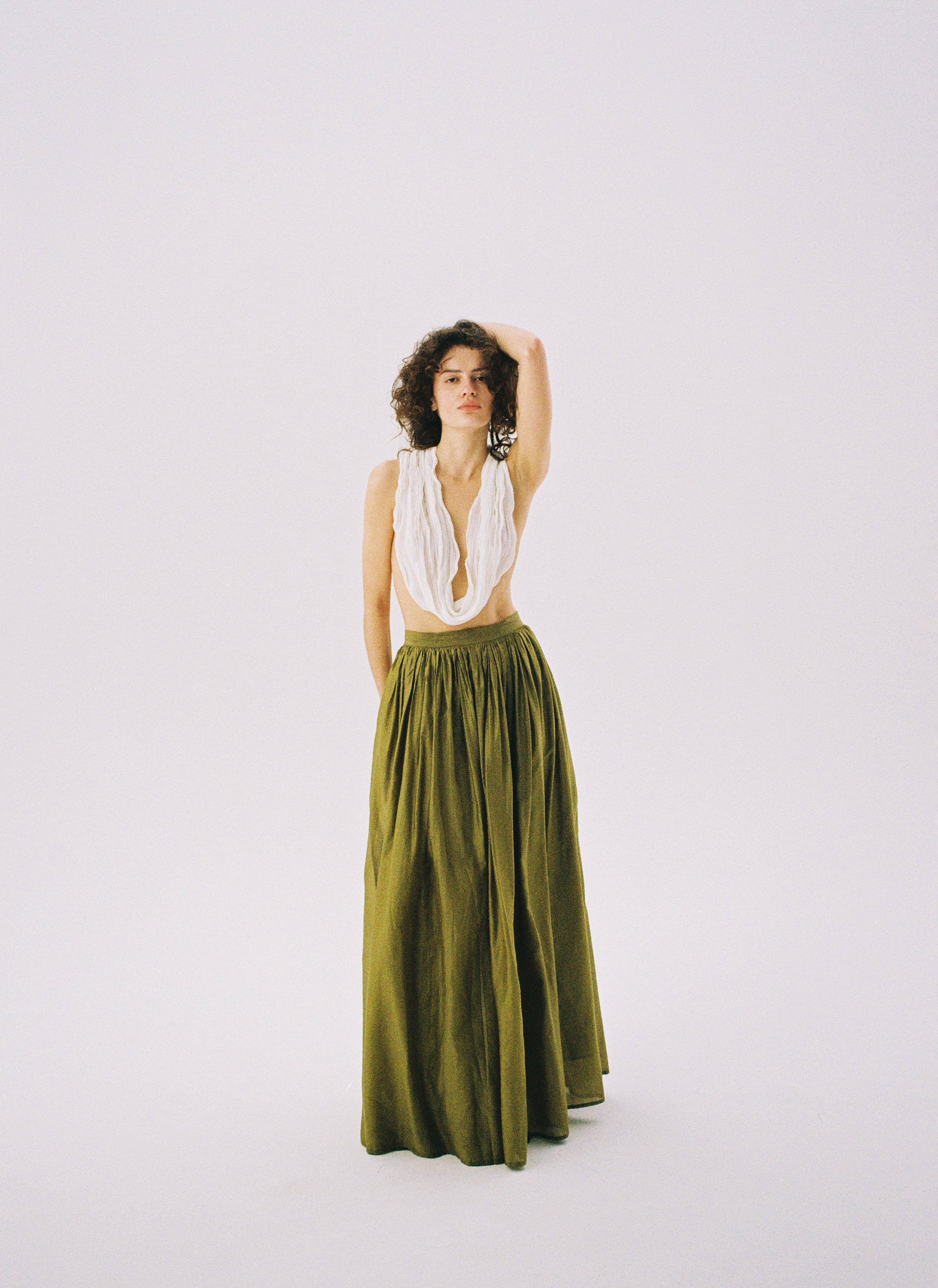 Центральным элементом остается туника Sphera, которая уже стала бестселлером бренда. В новом сезоне особый акцент сделан на джинсы Rabat, референсом для них послужили восточная эстетика и дух Марокко. Их свободный силуэт продолжает идею внутренней и внешней свободы, которая является одной из главных ценностей Ananke.