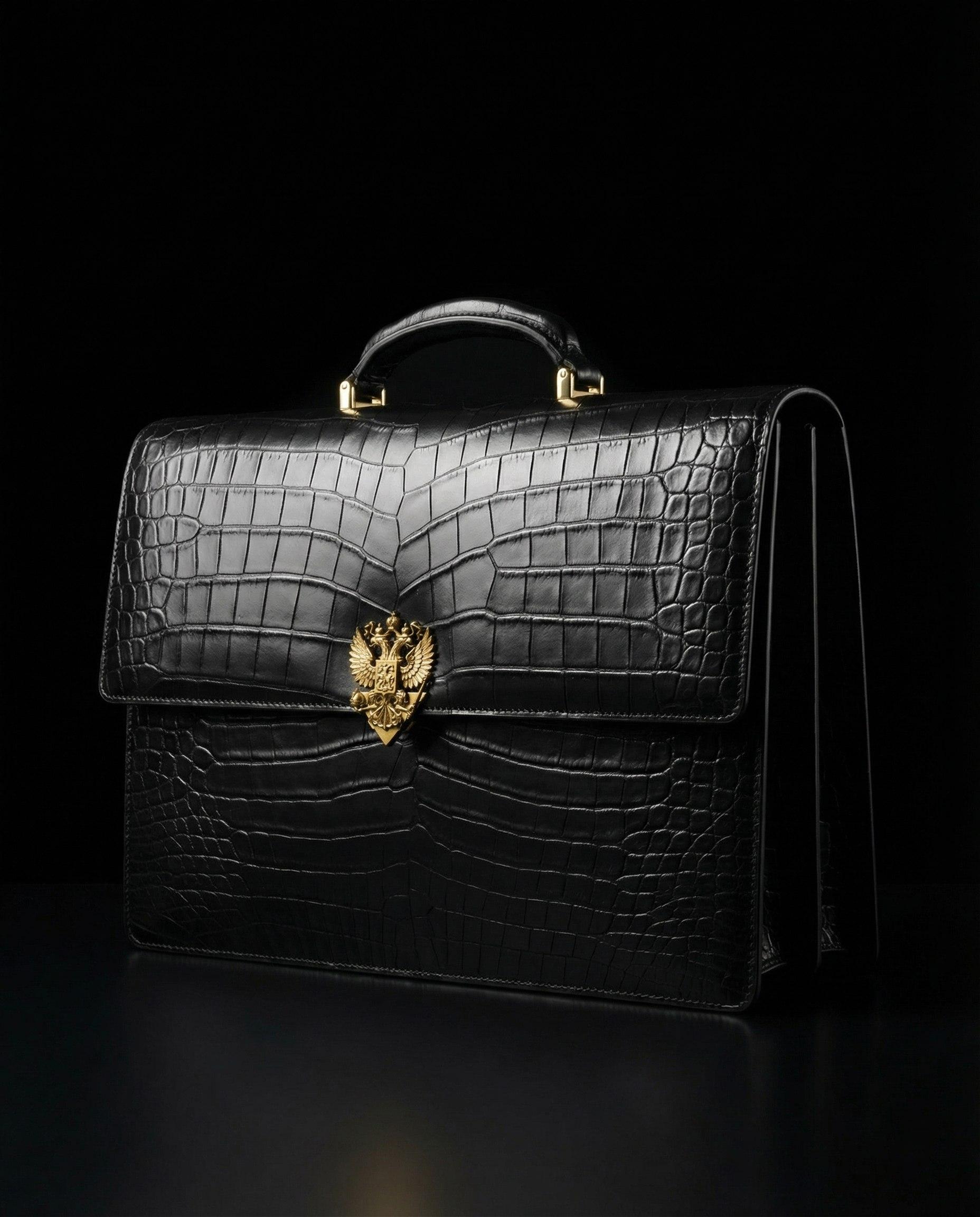Портфель из кожи американского аллигатора с гербом России представило московское ателье Strogo