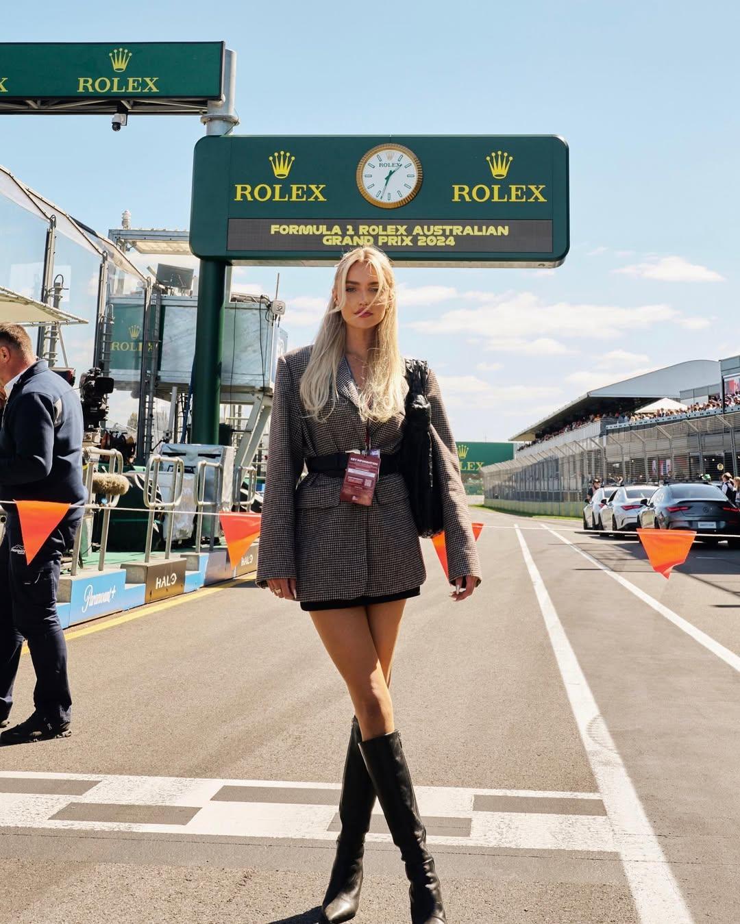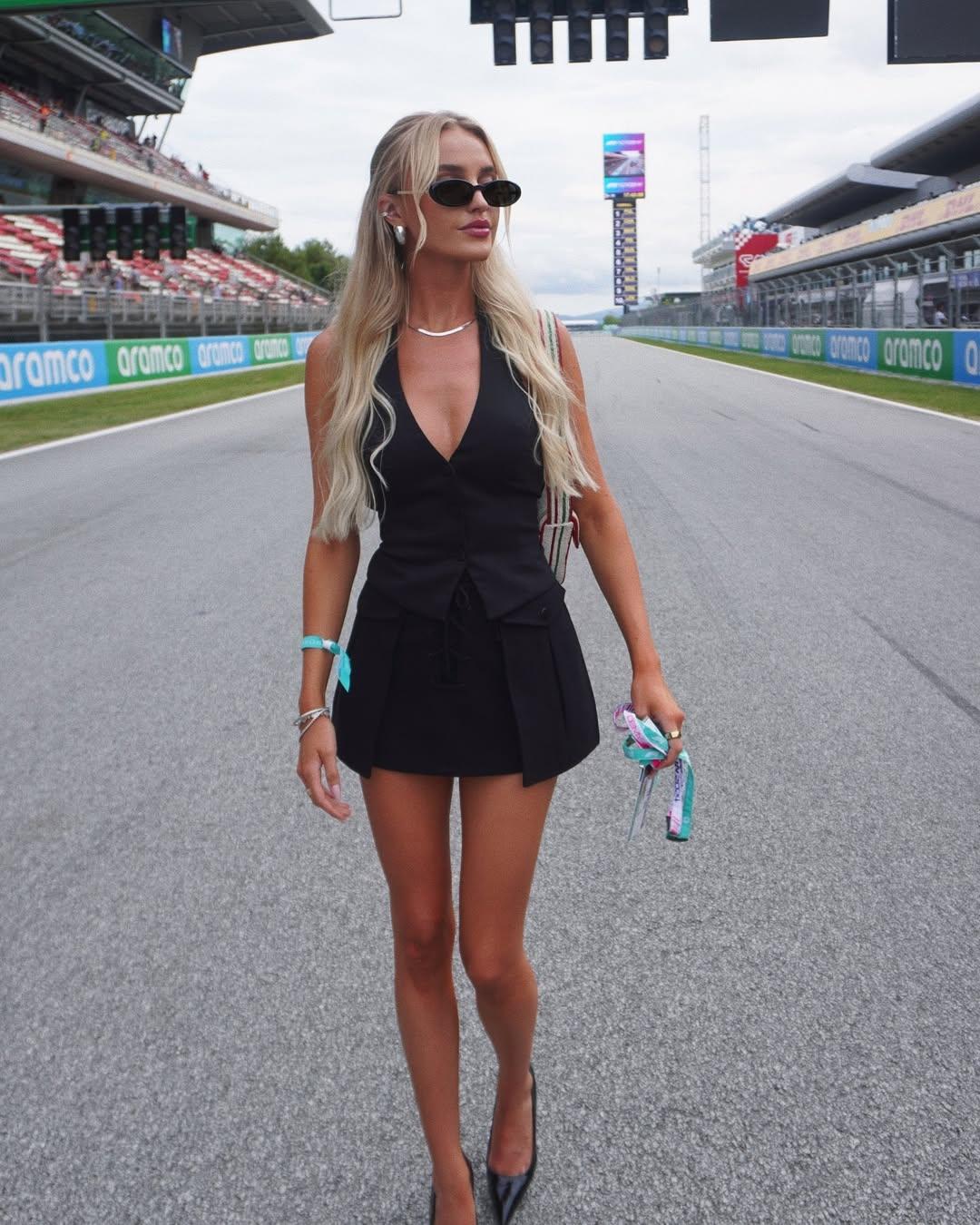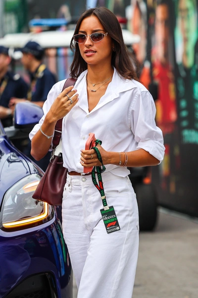 Девушка, что внимательно следит с трибун за заездами британского гонщика Формулы-1 Джорджа Рассела — это Кармен Монтеро Мундт. Эта пара вместе с 2020 года и по праву считается одной из самых стильных в спортивном сообществе. Имея степень бакалавра в области управления бизнесом и финансов, Кармен успешно строит карьеру в сфере финансового управления. Серьезность и профессионализм девушки читаются и в ее безупречном стиле: Мундт верна классике, ее образы отличаются элегантностью и сдержанностью, а среди фасонов она выбирает простой и подчеркивающий фигуру. Правда, помимо платьев-футляров и пиджаков, Кармен не против сочетания простых джинсов с белой футболкой — в этом она призналась в социальных сетях.