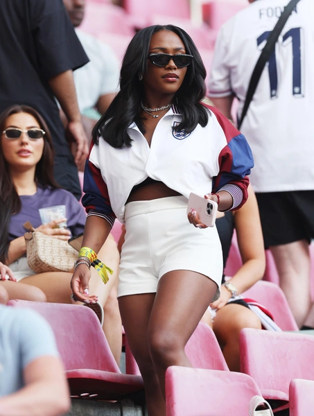 Новая девушка в рядах стильных жен спортсменов, о которой говорили все модные издания Великобритании во время прошедшего Евро-2024. Связано это не только с тем, что Толами встречается с нападающим сборной Англии Букайо Сака, но и с ее безупречными аутфитами. Особенно зрителям и подписчикам запомнился кастомный корсет, в котором девушка появилась в финале чемпионата: над его созданием работал дизайнер Хэтти Кроутер, превратив форму английской сборной в произведение искусства. Впрочем, это не первый случай, когда Толами виртуозно интегрирует предметы спортивного гардероба, такие как бейсболки, футболки джерси и мотокуртки в свои образы. Секрет ее стиля? Британскому Vogue девушка призналась, что у нее нет стилиста, «только очень честный чат с подружками».