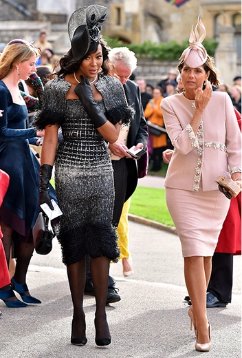 А вот на торжестве Меган и Гарри спустя семь лет все уже было иначе. Здесь цвет был ключевым и самым ходовым способом разнообразить лаконичный классический образ. Китти Спенсер в изумрудном, Амаль Клуни в канареечном, Крессида Бонас в ярком этническом принте — внимание этим гостьям было обеспечено (читайте также: 20 самых стильных гостей на свадьбе Меган Маркл и принца Гарри).