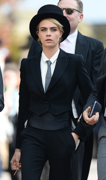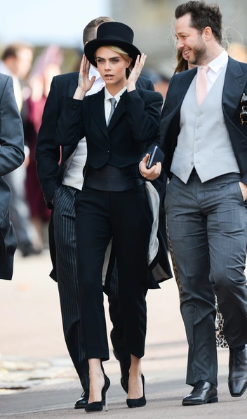 В 2011 году наименее востребованным среди женщин также был брючный костюм. Зато многие помнят историческое появление Кары Делевинь на свадьбе принцессы Евгении в 2018-м — тогда топ-модель и подруга невесты предстала перед гостями в классическом смокинге и лодочках на шпильках. Решение выглядело довольно радикальным на фоне более «осторожных» модниц.
