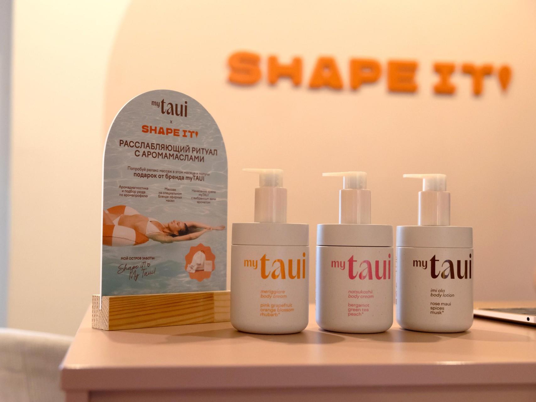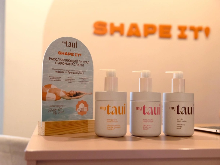 Ароматы становятся частью спа-процедуры, усиливая тактильные ощущения и превращая массаж в чувственное путешествие. Каждый сеанс завершается подарком от myTAUI × Shape it! : твердый гель для душа, лимитированная резинка для волос и лимонад. Коллаборация приглашает вспомнить, что забота о теле — это тоже способ путешествовать, не покидая города.
