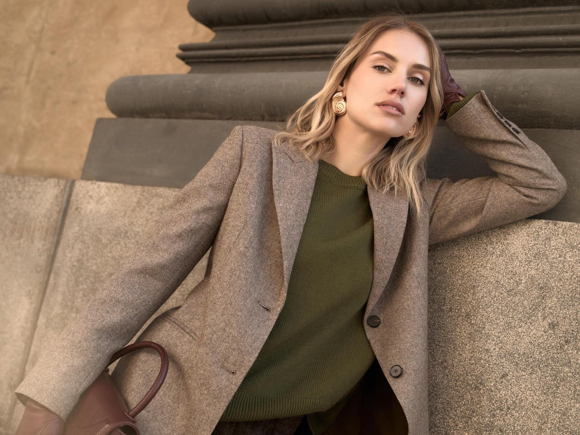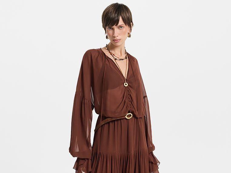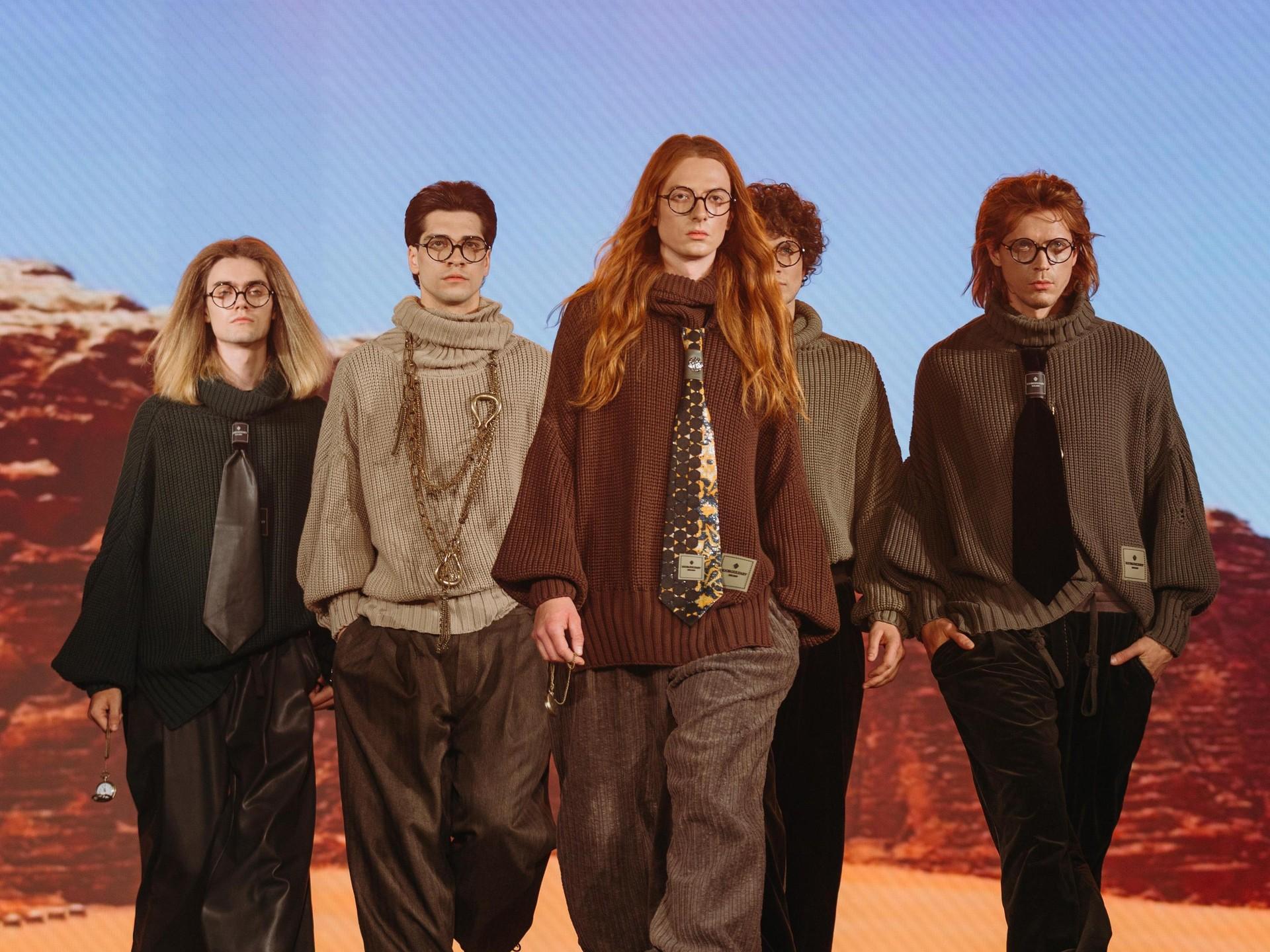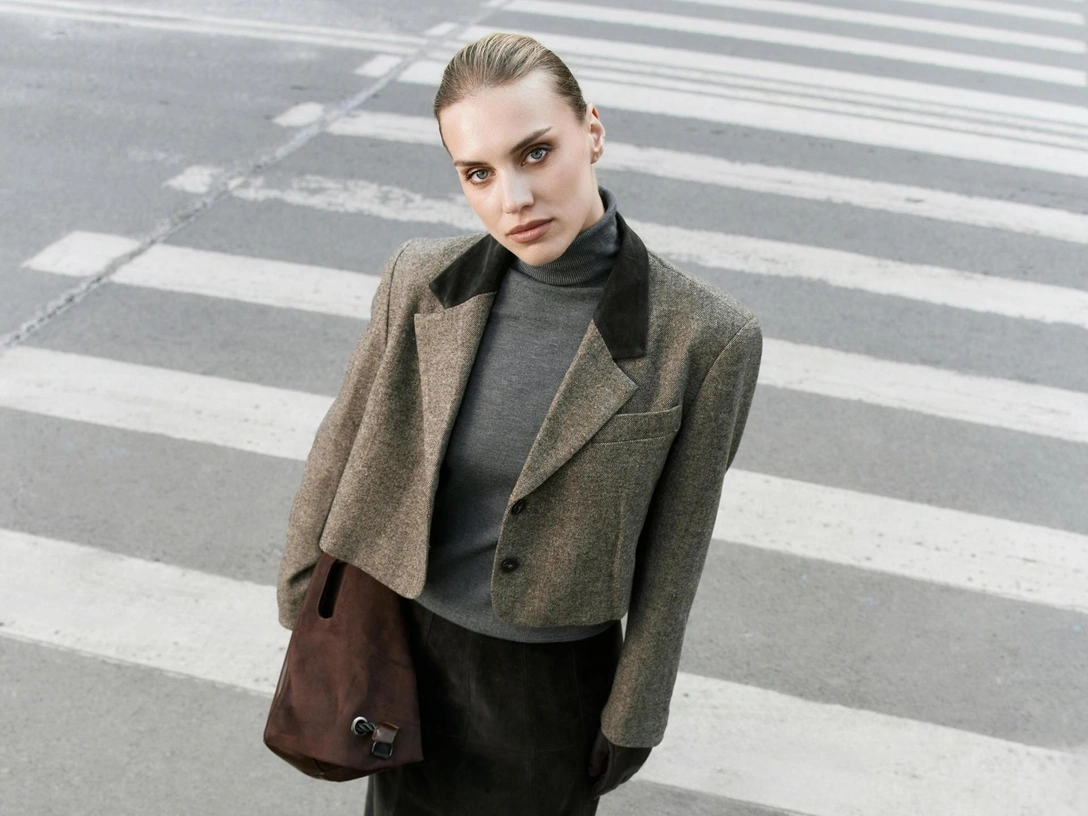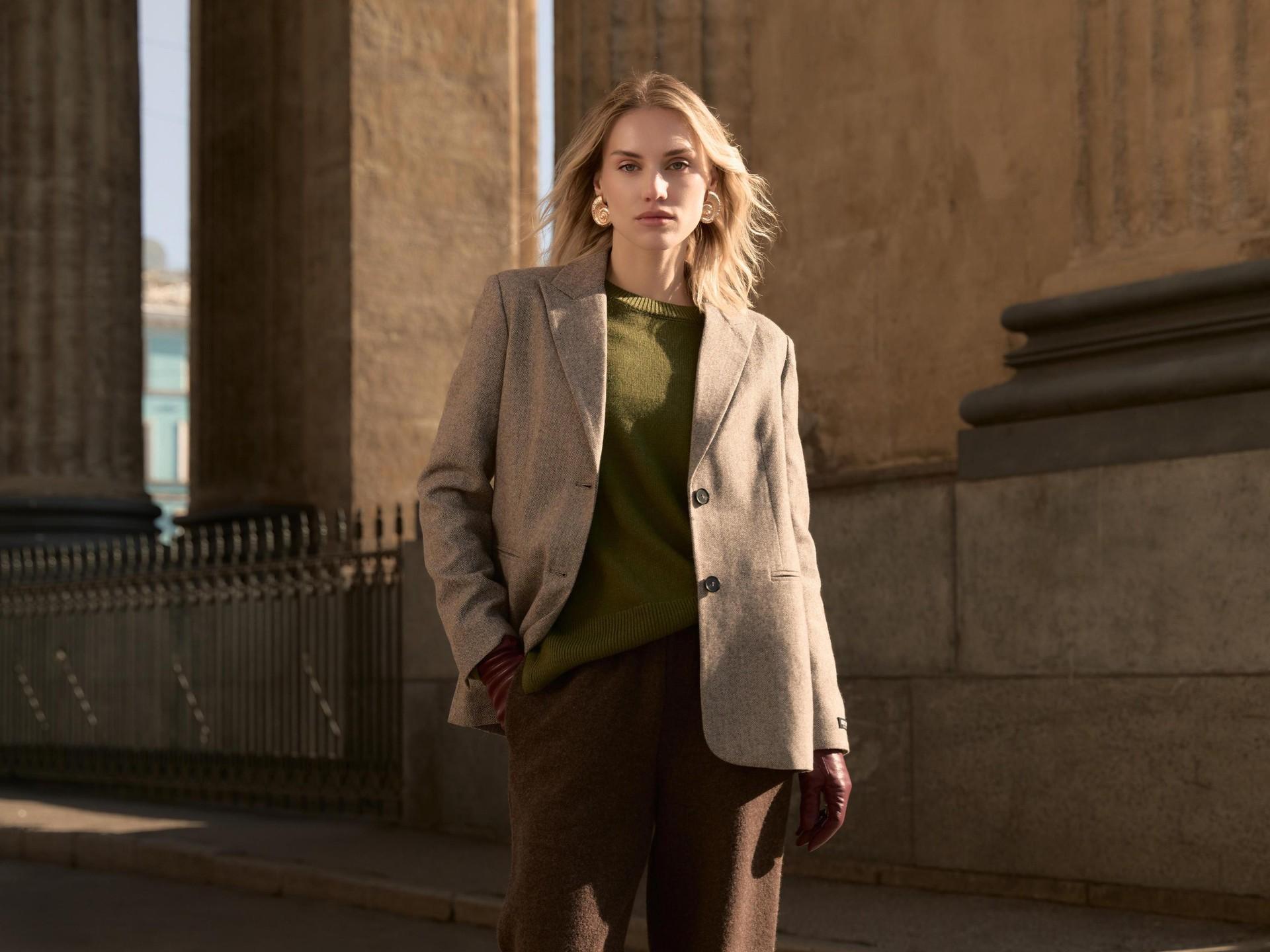Цветовая палитра строится вокруг оттенков карамели — от сливочного до шоколадного, дополненных глубокими изумрудными и рубиновыми тонами. Завершают образы акцентная обувь и аксессуары: ботфорты из натуральной замши, металлические сумки, кожаные перчатки и ремни. Коллекция Studio — это игра с формами и фактурами, вдохновленная свободой самовыражения и духом 70-х, переосмысленная для нового сезона.