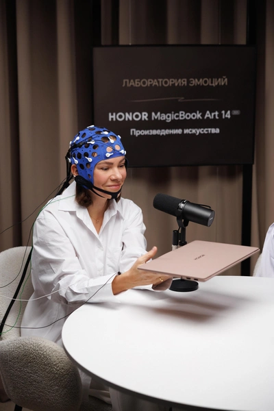 К запуску нового HONOR MagicBook Art 14 в новом цвете бренд решил провести эксперимент и узнать, насколько разные эмоции могут вызывать предметы, которые мы трогаем каждый день: теплое дерево, грубый металл, нежный шелк и другие. Блогер Ксения Прохорова (Im_ksun) и нейропсихолог Алена Ванченко провели тестирование с помощью специальных датчиков, чтобы зафиксировать реакции на различные стимулы. В эксперименте принял участие и ноутбук HONOR MagicBook Art 14.