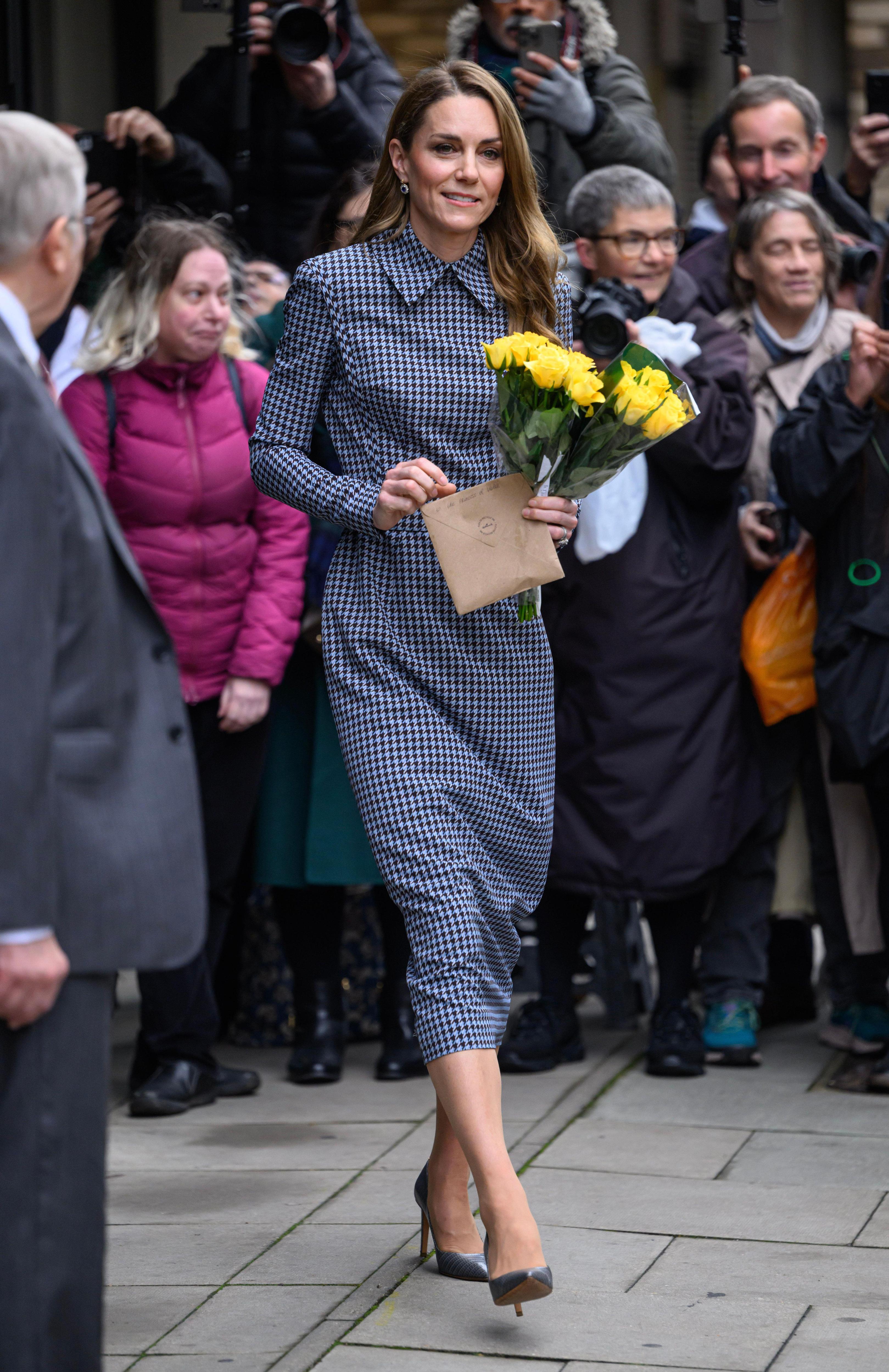 Это и есть фирменный стиль Кэтрин, о котором все говорят. Всегда следуя определенным правилам — формальности, уместности, допустимому минимализму, — она меняет лишь детали. Например, надевает не однотонное платье, а выбирает «гусиную лапку» Emilia Wickstead. А клетка, как известно, — один из главных принтов текущей осени (читайте также: Самый модный принт сезона — клетка: где купить и как стилизовать).