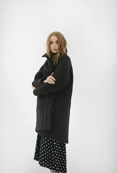 Четырехлетний одноименный бренд Ангелины Эрф предлагает шелковые комбинации, кашемировые пальто, сложно скроенные рубашки и прочие предметы женского гардероба первой необходимости. Все, как мы любим: натуральны ткани и дизайн, не лишенный оригинальности.