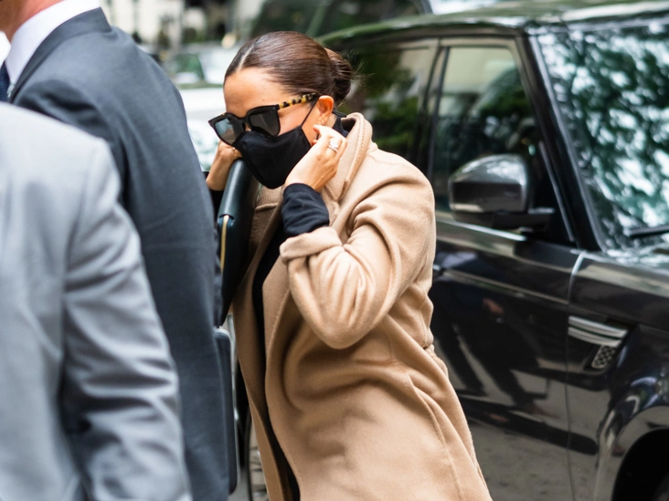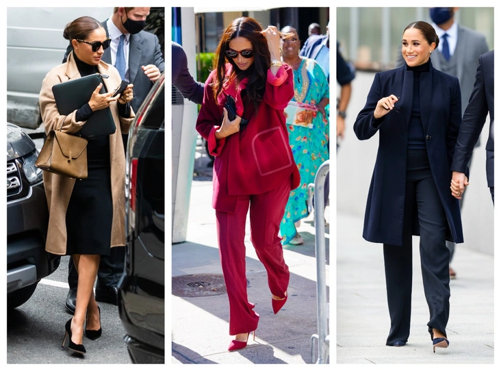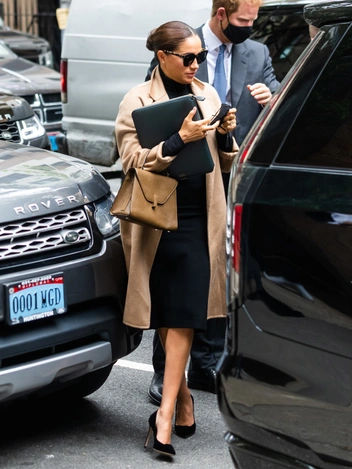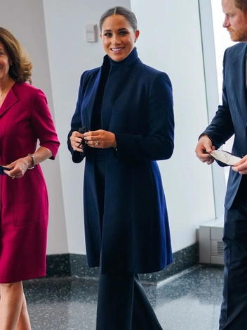 Меган появилась в ООН дважды, и оба раза в бежевых пальто Max Mara (отметим, что в разных). После экскурсии в One World Trade Center в четверг Сассекские успели провести встречу с Линдой Томас-Гринфилд из ООН. Перед этим герцогиня успела надеть бежевое пальто Max Mara за 1625 долларов, остроносые лодочки из черной замши Giorgio Armani за 675 долларов, черную юбку и топ.