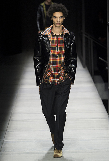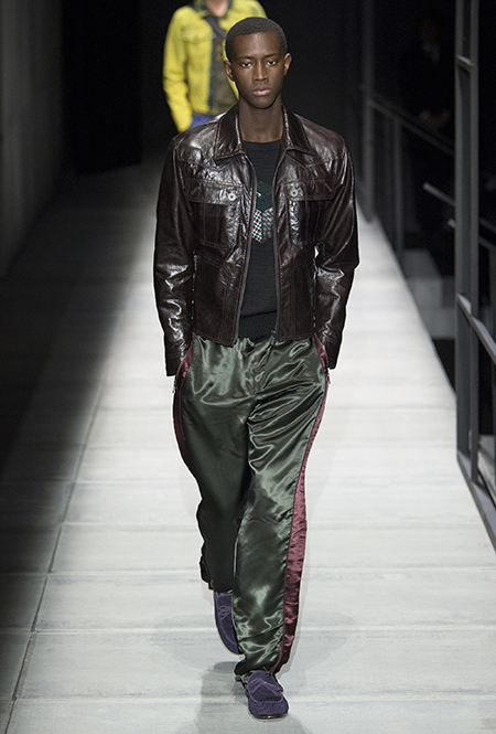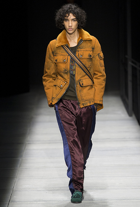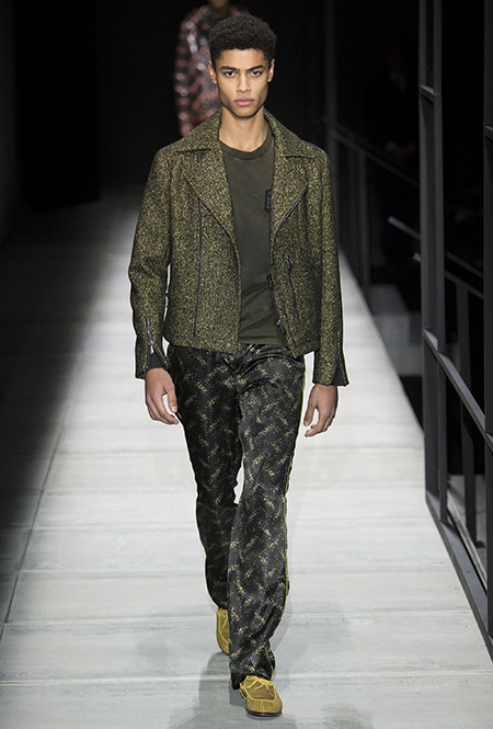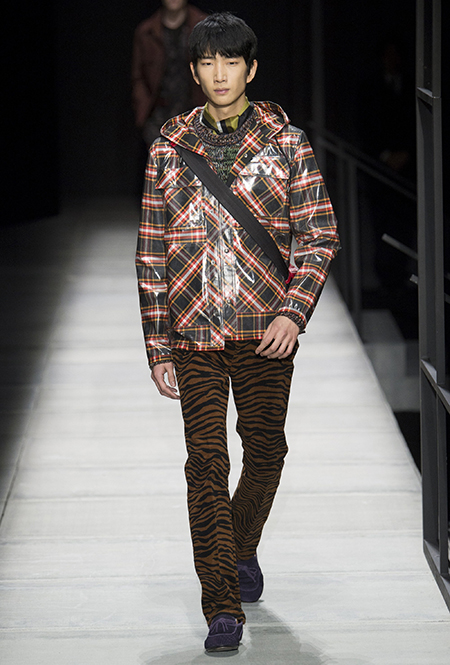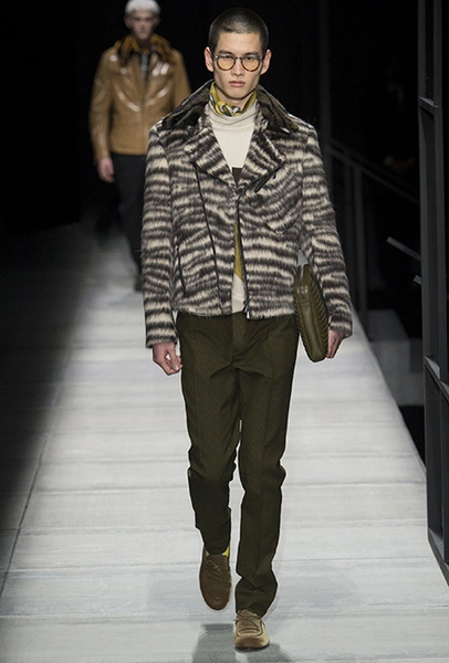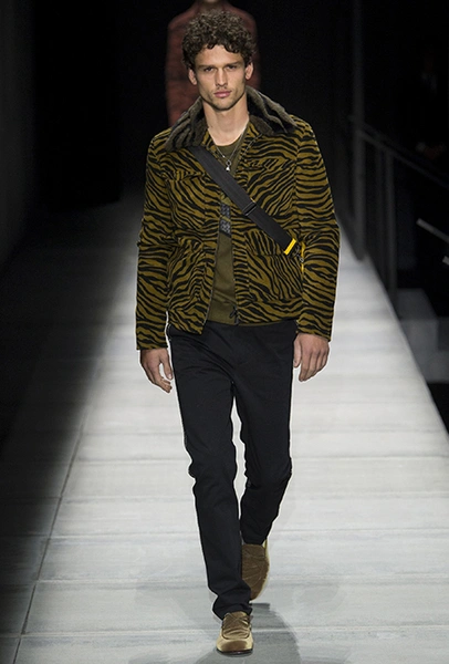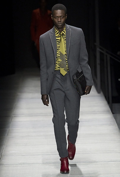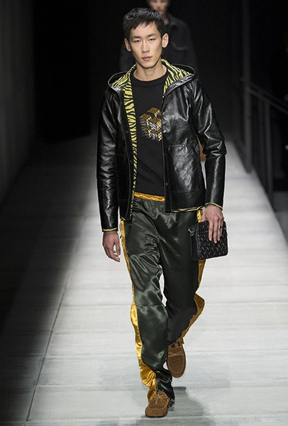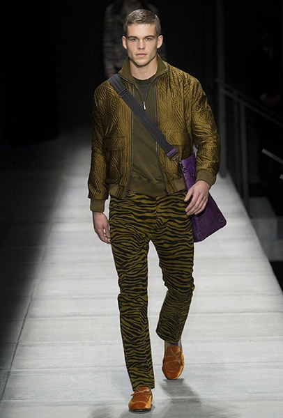 Мужские образы нью-йоркцев в представлении Майера получились очень смелыми: все тот же анималистский принт, поселившийся на куртках и пальто, все те же шелковые пижамы и несколько вариантов костюмов со смокингами, лишенных классического прилегающего силуэта. Никаких стереотипов и прочтений «в лоб»: дизайнер соединяет наряды белых воротничков из Сохо с андеграудной модой населения Гарлема, получая в итоге смелый комплект, который, быть может, и олицетворяет Нью-Йорк во всем его многообразии.