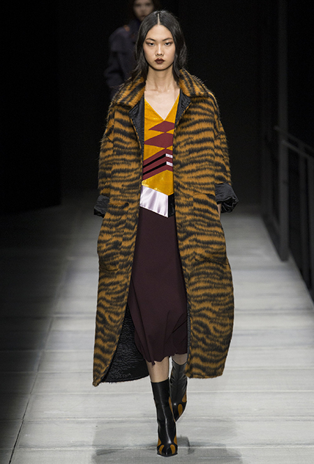 Нью-Йорк – очень многогранный город. Парадоксальным образом в нем уживаются влиятельные брокеры с Уолл-стрит, шопоголики с Пятой авеню и богема Гринвич-Виллидж. Нельзя составить единый портрет жителя Большого яблока – слишком велики объективные различия, которые просто не могли не появиться в огромном мегаполисе, однако Майер в своей коллекции отображает все нью-йоркские архетипы. Женские раскрываются с помощью струящихся пижам всех цветов предзакатного неба на Гудзоне и роскошных бархатных платьев для вечерних выходов на бродвейскую премьеру. Кроме них – брючные костюмы для неспешной прогулки по Таймс-сквер, трикотажная группа – для тех случаев, когда наряжаться совсем не хочется, а также плащи из вощеной кожи и пальто, раскрашенных в хищный тигриный принт. Как тут не вспомнить историю Марии Захаровой, названной «олицетворением Манхэттена»?