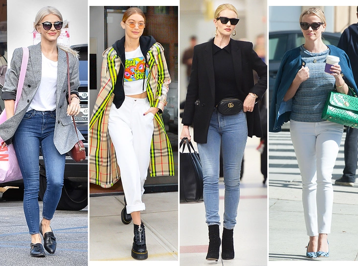 На заре своего появления джинсы были частью униформы фермеров, строителей и золотоискателей, но в 40-е годы темно-синий деним начал свое победное шествие далеко за пределы стройки. Сегодня джинсы незаменимы во всем своем многообразии. Скинни, столь часто ругаемые за не самую «комплементарную» форму, прямые или широкие; на высокой талии или на низкой; с потертостями и без; синие, черные, белые — все, абсолютно все джинсы мы любим и носим. Кроме того, denim on denim — основной тренд сезона, так что без джинсов точно не обойтись. Но если джинсы знакомых марок вас уже не вдохновляют, может, пора присмотреться к тому, что носят знаменитые девушки?