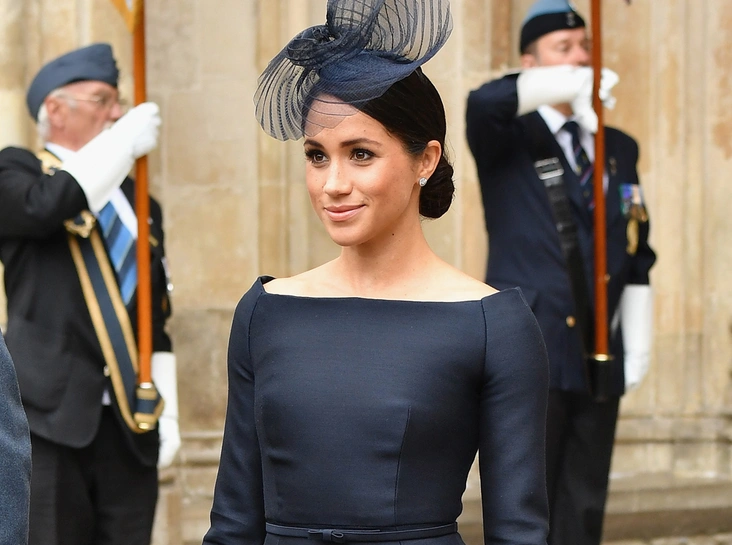 10 июля герцогиня Меган в компании других членов королевской семьи появилась на балконе Букингемского дворца во время парада в честь 100-летия основания Королевских военно-воздушных сил (RAF). Для мероприятия девушка выбрала иссиня-черное платье от Dior с расклешенной юбкой и вырезом лодочкой в комплекте с бежевыми туфлями, черным клатчем (тоже Dior) и шляпкой Stephen Jones.