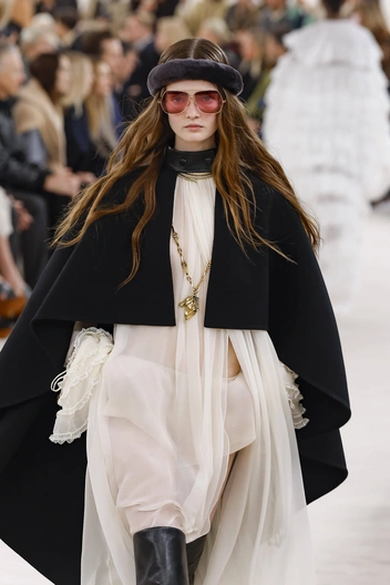 Со временем тренд стал чуть тише, а ему на смену пришли другие варианты. Однако некоторые отголоски стиля «жены бизнесмена 90-х» мы наблюдаем до сих пор — и даже в свежих подиумных коллекциях. Один из таких — это тренд на ободки с меховой отделкой, которые стали одним из самых заметных акцентов показа Chloe осень-зима 24/25. Рассказываем, с чем их можно носить прямо сейчас.