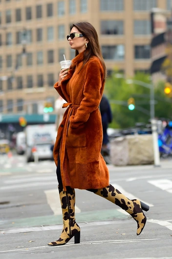 Высокие угги вошли в моду осенью 2023 года и остаются с нами по сей день — так что пользуемся случаем. Эту удобную и стильную обувь хорошо сочетать с цветной шубой из эко-меха, которая как раз находится на пике трендов зимы 2024. Гармоничнее будет смотреться шуба классического оттенка — черного, светло-голубого, светло-розового или белого. Варианты ярких цветов или с принтами могут «перегрузить» образ, который итак полон интересных деталей. И в завершение выхода — конечно, меховой ободок. Подберите вариант, который совпадает по цвету либо с шубой, либо с обувью, чтобы лук смотрелся завершенно.