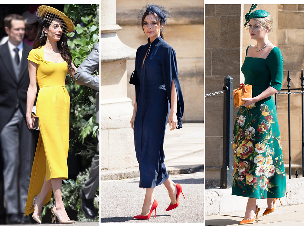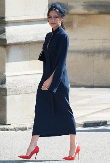 Этот нехитрый стилистический прием, известный столь же долго, сколько в принципе существуют туфли на каблуке, на торжестве в Виндзоре стал одним из самых популярных. Его использовала уже упомянутая Виктория Бекхэм, сочетая темно-синее платье (своего авторства, разумеется) с коралловыми лодочками. С первыми же фотографиями наряд миссис Бекхэм обвинили в излишней строгости, который, как пишут журналисты, подошел бы больше траурной службе, чем королевской свадьбе. Однако спасение было найдено как раз в цвете лодочек: выбирайте коралловый или другие яркие цвета обуви, если вы, как и Викки, любите темные оттенки платьев и не готовы предать свою любовь даже в условиях жесткого протокола.