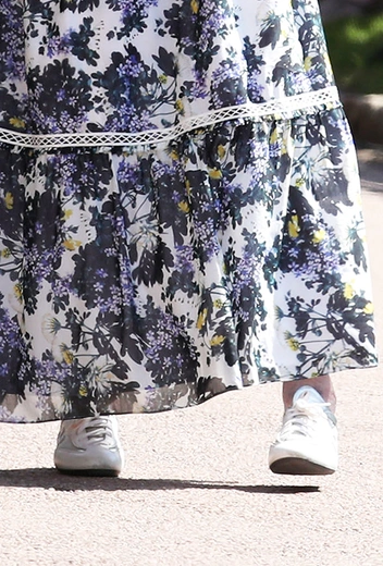 Среди гостей королевской свадьбы были и те, кто проблему выбора обуви решил радикально — с помощью кроссовок. В белоснежных кедах на венчании пары в часовне святого Георгия появилась герцогиня Кентская Екатерина, сумевшая удивительно удачно в пару к ним подобрать платье от Erdem.