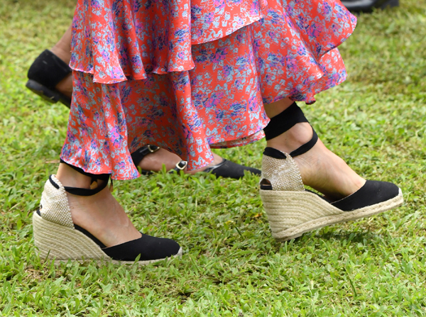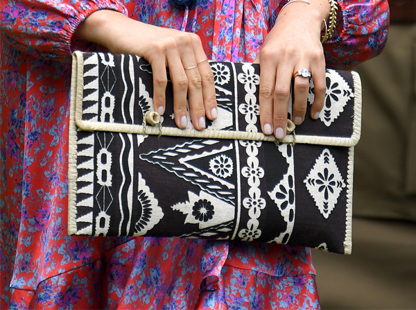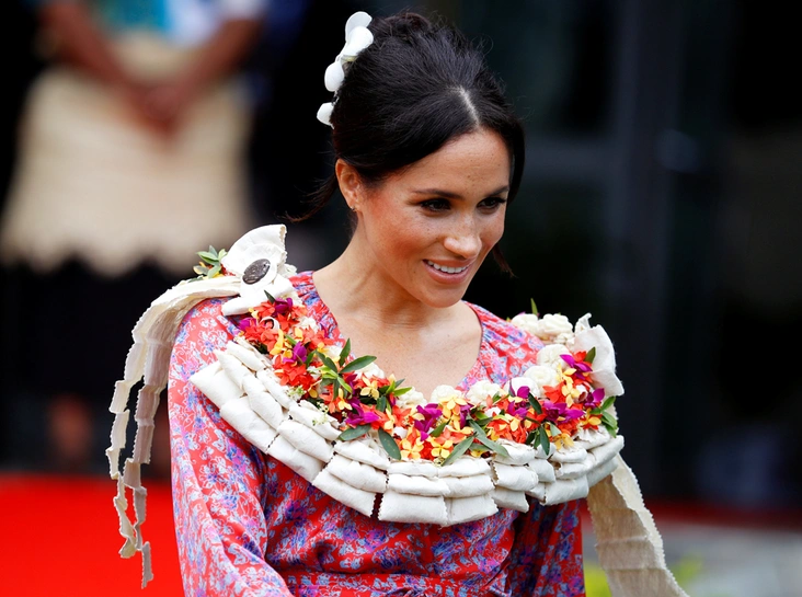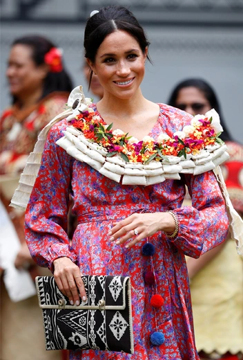 Супруга принца Гарри Меган Маркл тоже не осталась в стороне от экспериментов с одеждой народных культур: во время посещения Южнотихоокеанского университета в рамках своего первого зарубежного тура она предстала в платье Figue ($1 495) с флоральным принтом, дополнив его эспадрильями на танкетке от Castaner ($120).