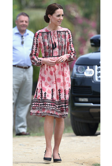 Однако герцогиня Сассекская — далеко не первая из королевских особ, кого привлек этнический стиль: подобный наряд в 2016 году выбирала Кейт Миддлтон для поездки по Индии и Бутану. На матче по крикету в Мумбаи она появилась в платье индийского дизайнера Anita Dongre (£140), серьгах Accessorize (£8) и эспадрильях на танкетке Monsoon (£45). К слову, все образы герцогини Кембриджской из этого тура — наглядное пособие о том, как одеваться в стиле бохо, даже если вы ярый приверженец классики и консерватизма. А Кейт и правда довольно редко позволяет себе невообразимые эксперименты с эклектикой и затейливыми принтами.