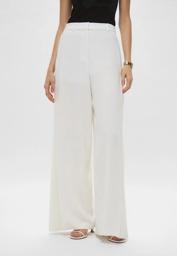 Далее переходим к аксессуарам. Все зависит от того, какой дресс-код предусмотрен у вас на работе. Для компаний, где необходимо соблюдать сдержанный деловой стиль, ограничимся лишь остроносыми мюлями на маленьком удобном каблуке и вместительной сумкой в тон к наряду. Если же ваша фирма позволяет носить яркие украшения, то не стесняйтесь дать волю фантазии — идеальный «чистый лист» в образе уже составлен.
