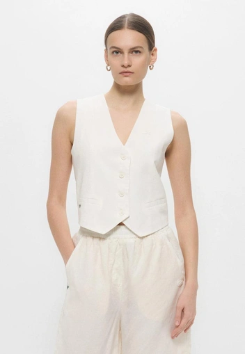 Кроме того, следует не ограничивать себя в выборе аксессуаров. Зону декольте стоит оставить открытой, поскольку жилет — достаточный акцент в этой области. Лицо же можно подчеркнуть с помощью ярких серег, а в пару к ним выбрать несколько лаконичных браслетов — такое сочетание сейчас считается горячим трендом (читайте также: Расставляем акценты: 11 модных украшений на 2025 год, которые сделают образ ярче).