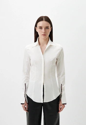 В дополнение к костюму подбираем идеальную рубашку. Самое главное здесь выбрать правильный фасон и оттенок. Она должна идеально прилегать к телу, чтобы когда вы наденете и застегнете блейзер, она не начала топорщиться. Что же касается цвета, то важно найти тот, который точно будет подходить к костюму. Существует великое множество оттенков белого, поэтому если вы выбираете чуть более теплый вариант, следите за тем, чтобы блузка точно соответствовала той же гамме.