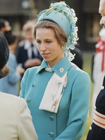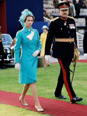Незадолго до своей свадьбы единственная дочь королевы отправилась в зарубежный тур, проходивший с 5 по 9 июня 1973 года. На этих снимках принцесса Анна запечатлена в Берлине на параде в честь дня рождения королевы. На ней очаровательный ярко-голубой комплект с цветочными деталями.