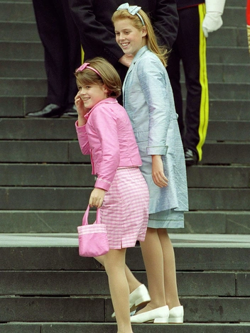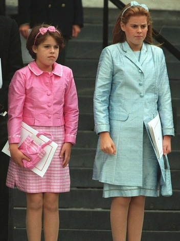 Образы принцесс, в полной мере отражающие моду начала 2000-х, впечатлили королевских поклонников еще на благодарственной службе в честь 100-летия их бабушки годом ранее. В 2000 году Беатрис и Евгения появились в соборе Святого Павла в Лондоне в кукольных голубом и розовом комплектах, дополненных ободками с бантами и белыми туфлями на низком каблуке.