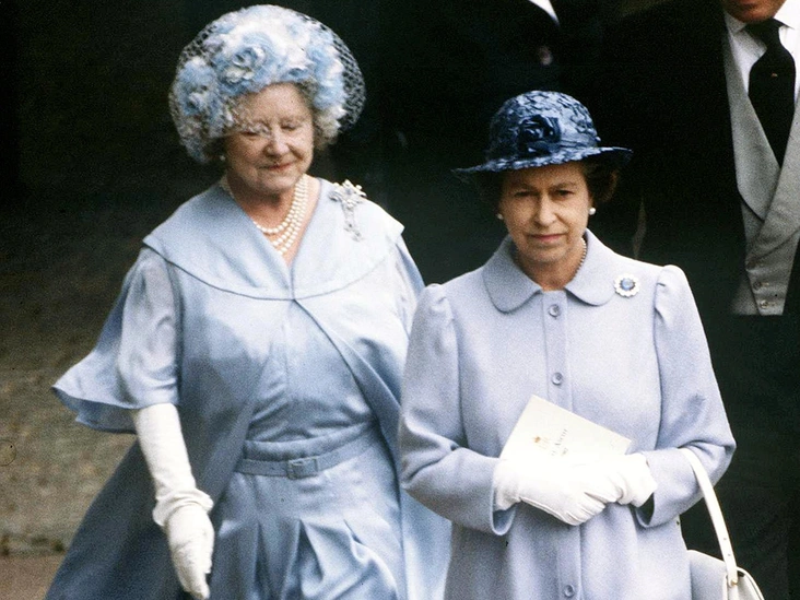 На протяжении последних двух декад ХХ века вдовствующая королева и правительница часто появлялись вместе в нежно-голубых ансамблях. Стиль матери и дочери в значительной степени отличался, так как вдовствующая королева предпочитала летящие ткани, цветные вуали и декор в романтическом ключе, а монарх предпочитала чуть более собранные формы, но за счет цвета дуэт выглядел очень трогательно.