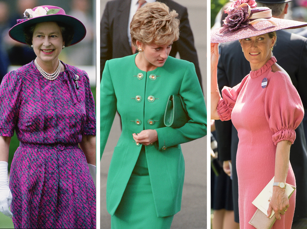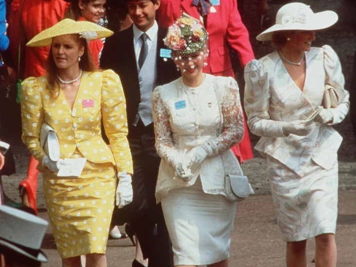 В 1980-х, когда герцогиня Сара и принцесса Диана еще были частью королевской семьи, они вовсю экспериментировали с разными стилистическими направлениями, склоняясь то к экспрессии, то к романтизму. Для скачек в Аскоте в 1987 году невестки выбрали костюмы в романтическом ключе: подчеркнутая талия, пышные рукава, широкополые шляпы. Нежность образов поддерживала тотальная цветовая гамма без резких вкраплений.