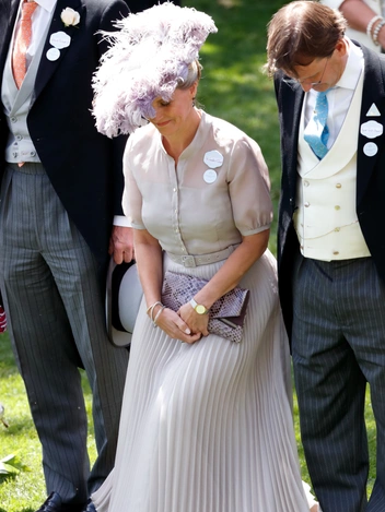 «Любимая невестка королевы» умеет обращаться с цветом не хуже своей августейшей свекрови. Так, готовясь к скачкам в Аскоте в 2018 году, Софи удачно обыграла оттенок, который на английском языке обозначается как mink, выдержав весь ансамбль в едином цвете и добавив контраста исключительно за счет текстур: плиссированный подол шифонового платья, сатиновые туфли, питоновый клатч и перья марабу на шляпе.