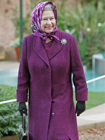 Ее Величество талантливо переносит свою страсть к тотальному цвету и на свой повседневный гардероб, где броские шляпы заменяются на шелковые платки, а летние жаккардовые пальто сменяются шерстяными зимними. На Цветочном шоу в Челси в 2006 году монарх предстала в фиолетовом пальто «в елочку», из-под которого виднелась ткань примерно того же оттенка, но с узором «турецкий огурец». Картину дополнил фиолетовый платок с цветочным рисунком.